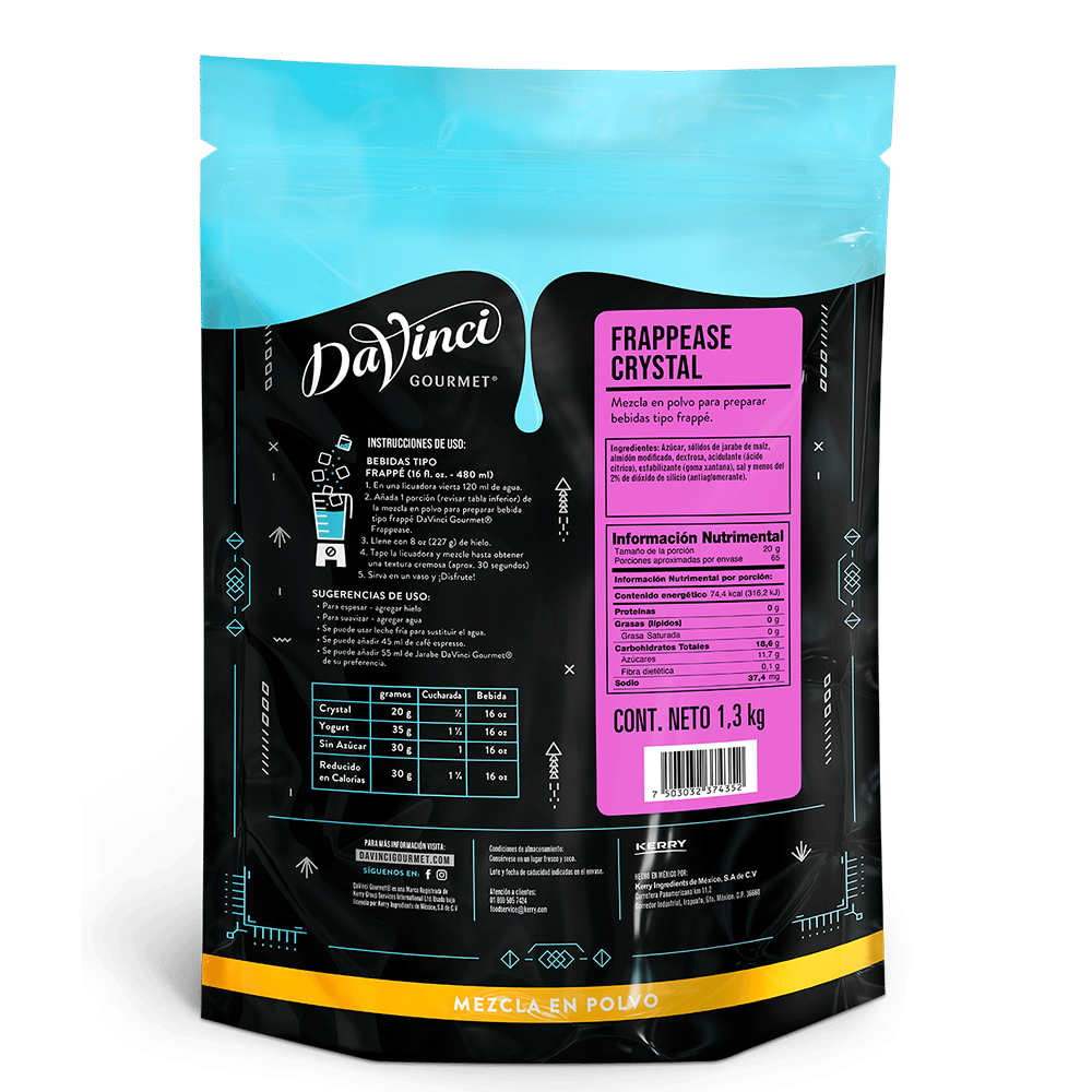El Polvo DaVinci Base Crystal es una mezcla premium utilizada como base para crear frappés y bebidas congeladas con una textura cremosa y suave. Su sabor neutro permit...[Ver Características]