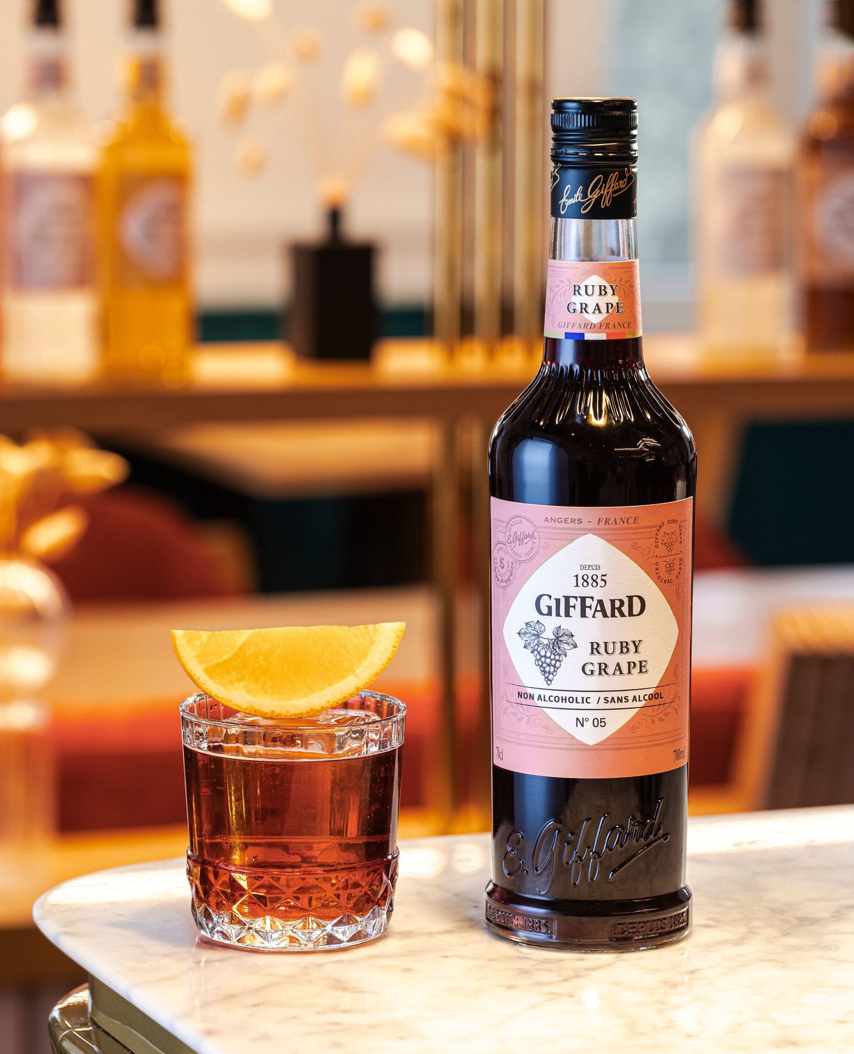 Descubre el sabor cómodo y equilibrado del Jarabe Giffard Ruby Grape Sin Alcohol , una alternativa ideal al vermut rojo, diseñada para coctelería sin alcohol. Con un perfil aromático profundo y afrutado, este jarabe es perfecto para cócteles elegantes, refrescantes y con un toque herbal, sin una gota de alcohol.
