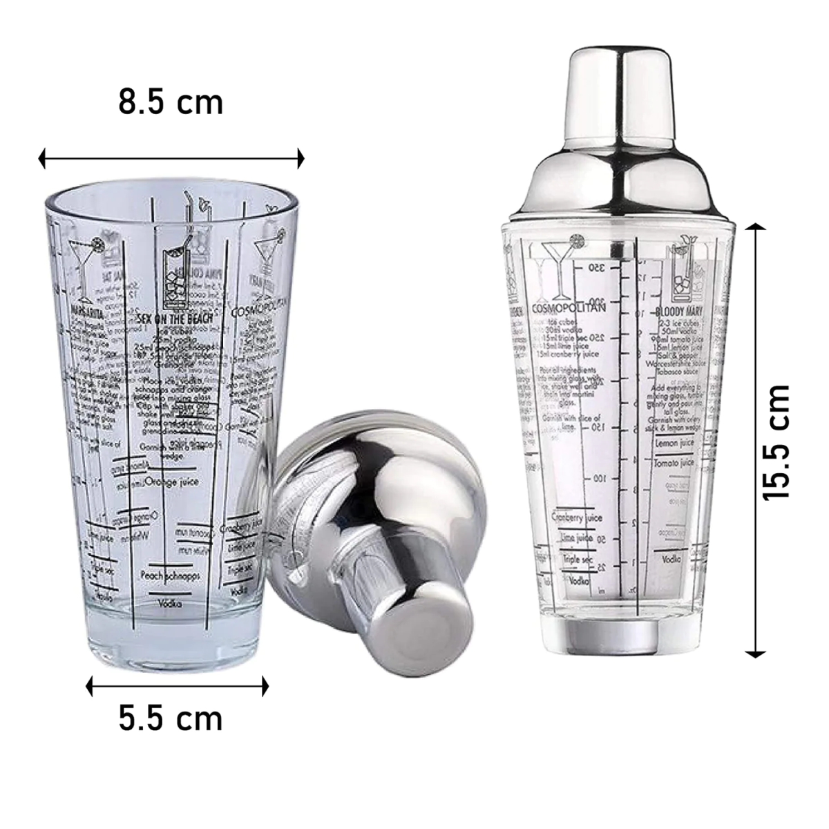 Shaker con Vaso de Cristal 400 ml.