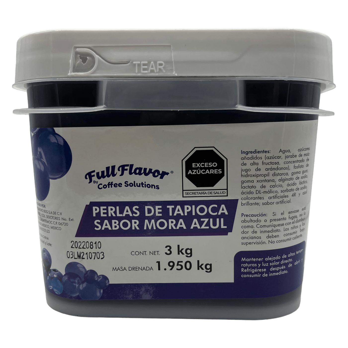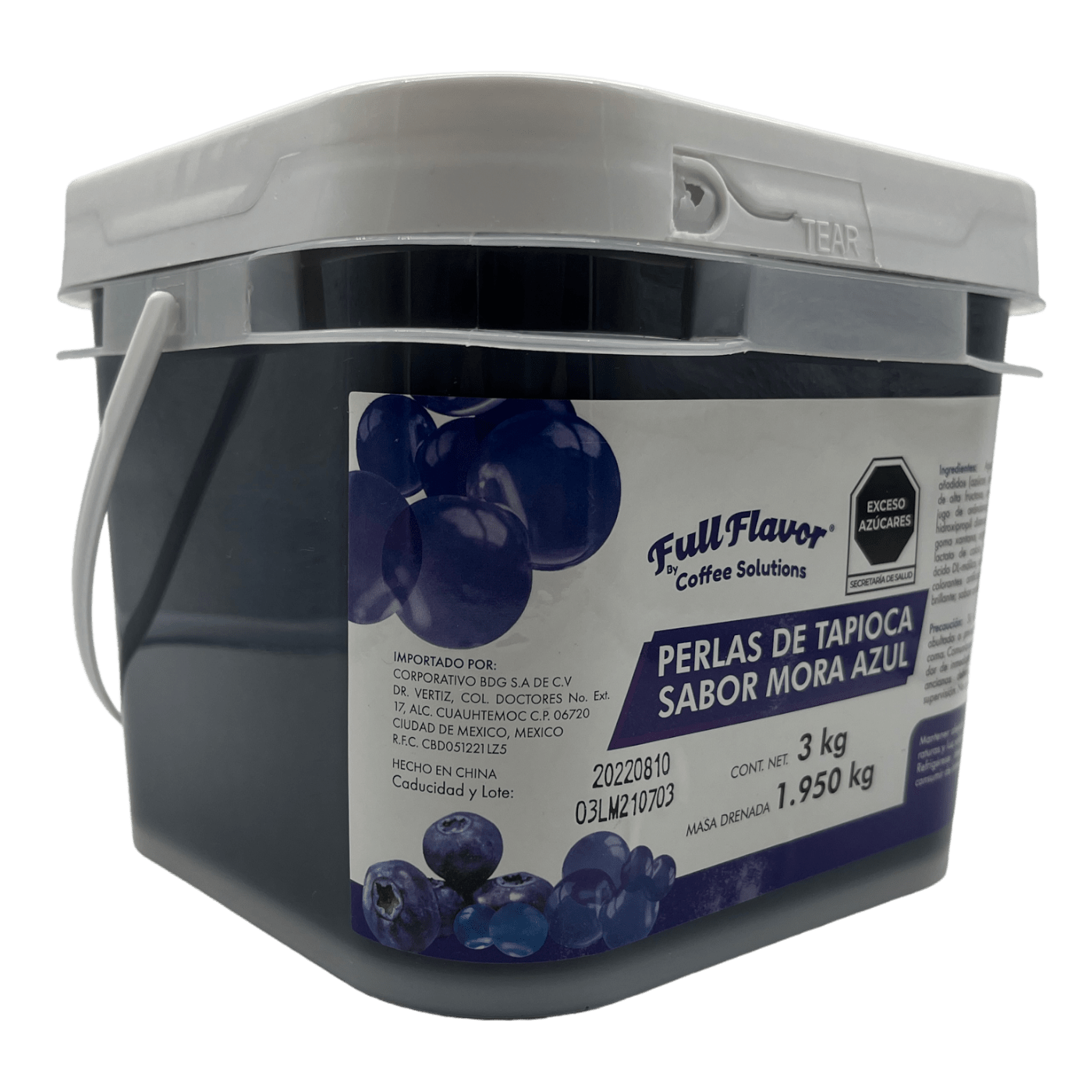 Perlas Explosivas Sabor Mora Azul, Bote de 3 Kilos