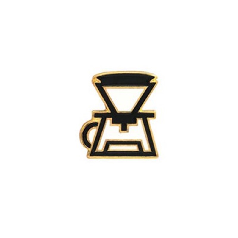 - Diseño Minimalista: Pin en forma de cafetera de goteo, con detalles en color negro, perfecto para un toque sutil y elegante.