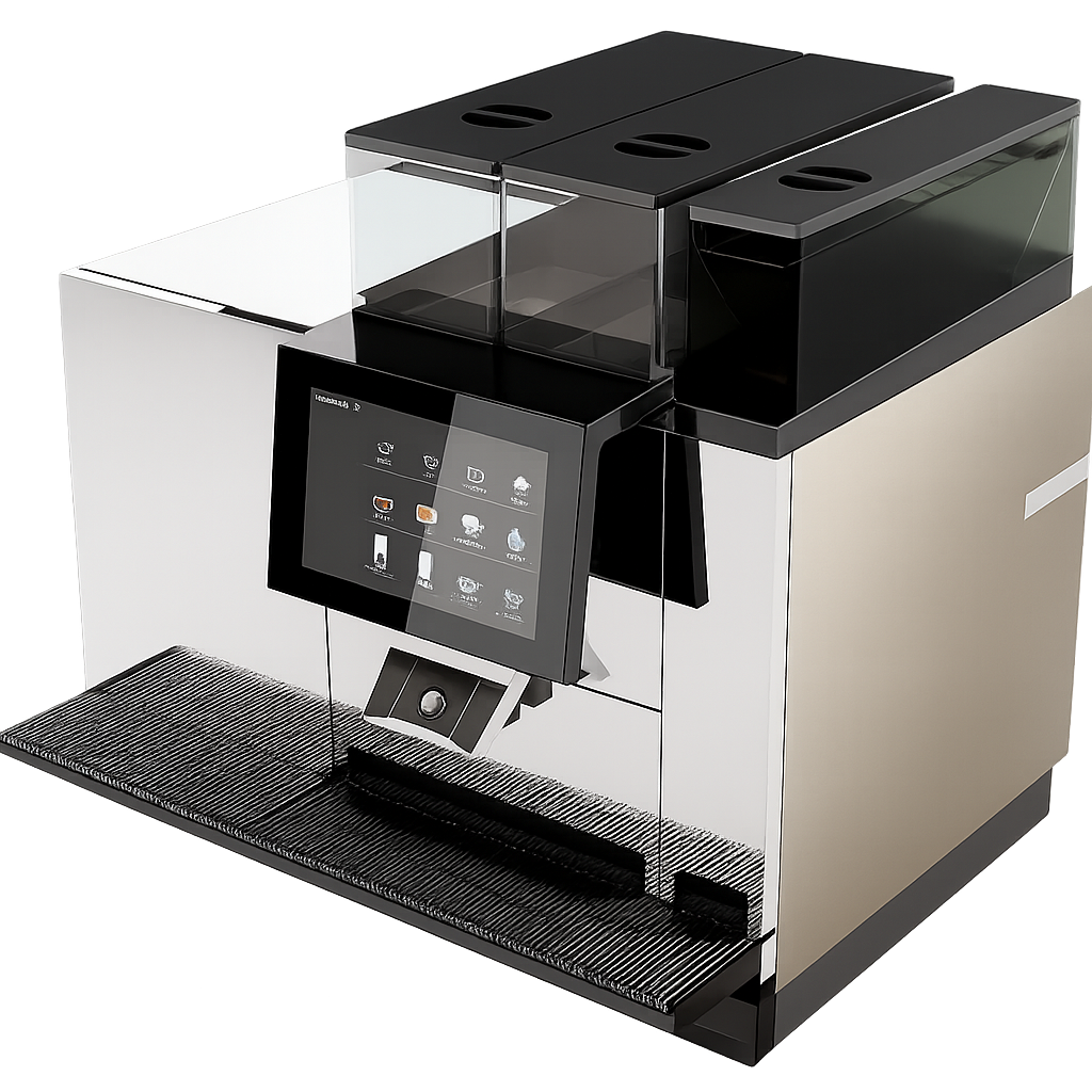 La Thermoplan BW4 CTM 2 P RL es una solución profesional de alto nivel para cafeterías, hoteles y puntos de autoservicio que exigen velocidad, consistencia y versatilidad en cada bebida. Esta versión incluye módulo de espumado para leche, pantalla táctil, depósito de chocolate y refrigerador lateral (RL) para facilitar el servicio continuo.