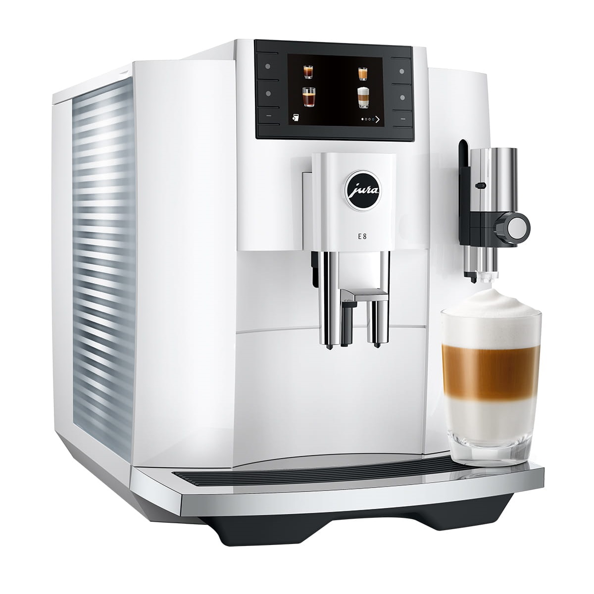 Gracias al Proceso de Extracción por Pulsos (P.E.P.), su molino P.A.G.2, el sistema One Touch Cappuccino (OTC) y una pantalla TFT a color de 3.5”, la Jura E8 ofrece resultados consistentes, aromas intensos y una operación totalmente automatizada, todo con el respaldo de la ingeniería suiza JURA.