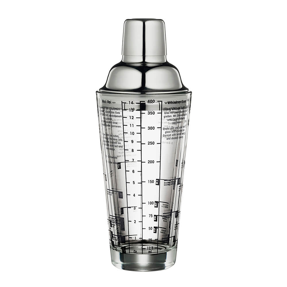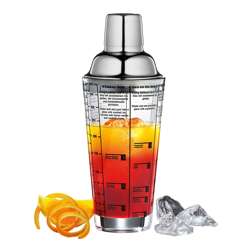 Shaker con Vaso de Cristal, Tapa de Acero Inoxidable capacidad 400 ml.