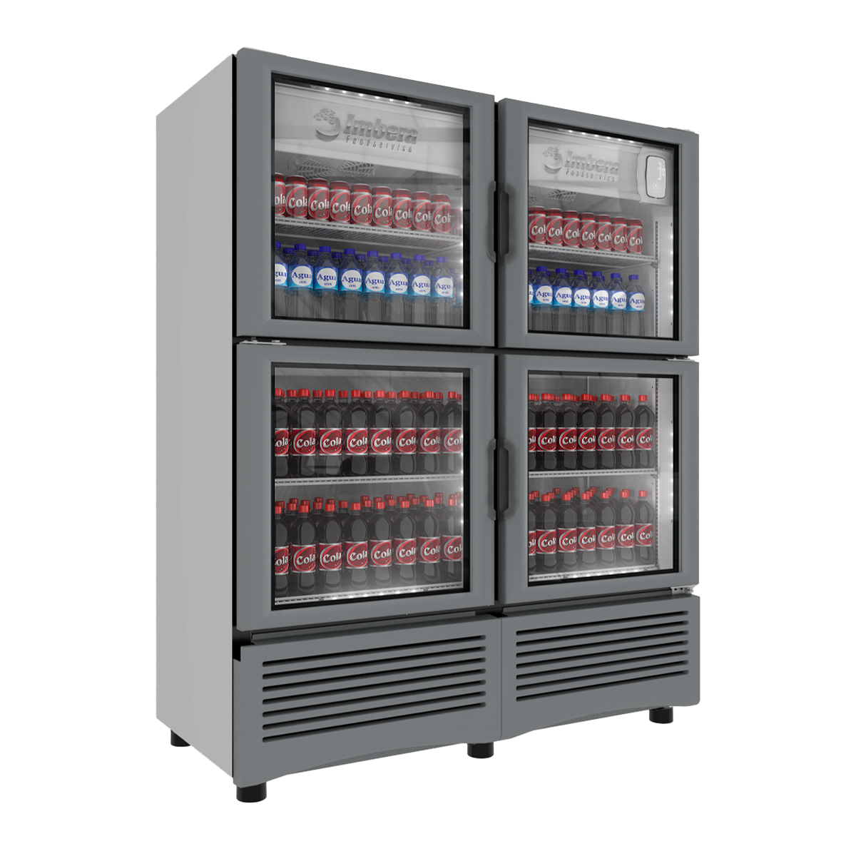 Capacidad de 35.1 ft3 (432 botellas de 600 ml., 960 latas de 355 ml.), compresor de 3/8 h. p., 9.5 amps., iluminación led, 4 puertas, medidas: 1500 x 707 x 1815 mm.