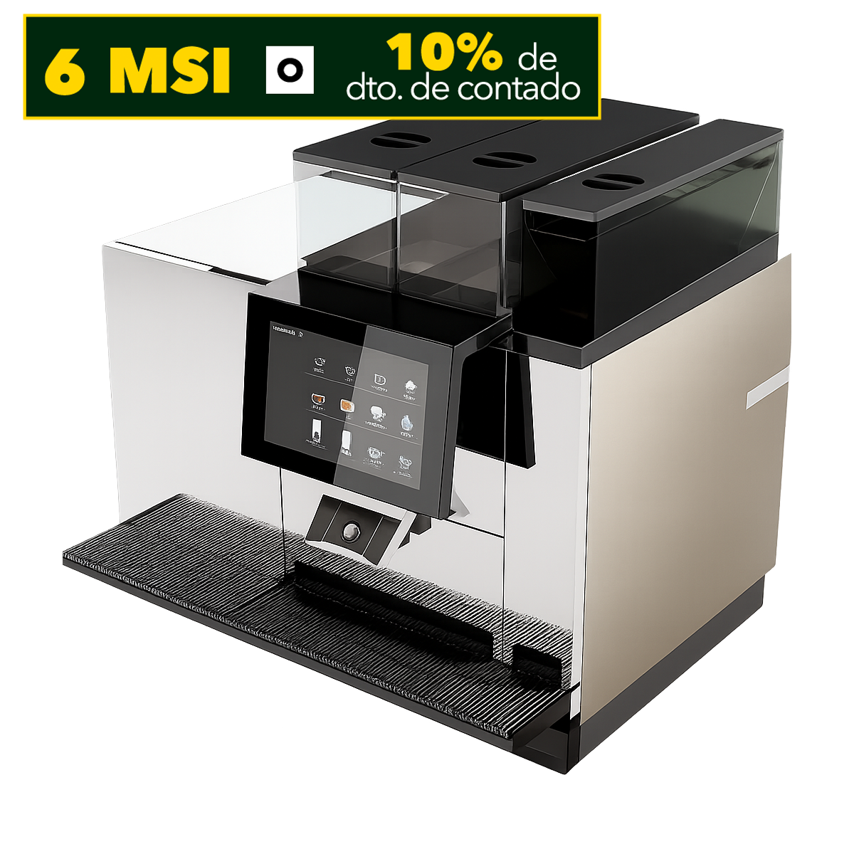 La Thermoplan BW4 CTM 2 P RL es una solución profesional de alto nivel para cafeterías, hoteles y puntos de autoservicio que exigen velocidad, consistencia y versatilidad en cada bebida. Esta versión incluye módulo de espumado para leche, pantalla táctil, depósito de chocolate y refrigerador lateral (RL) para facilitar el servicio continuo.