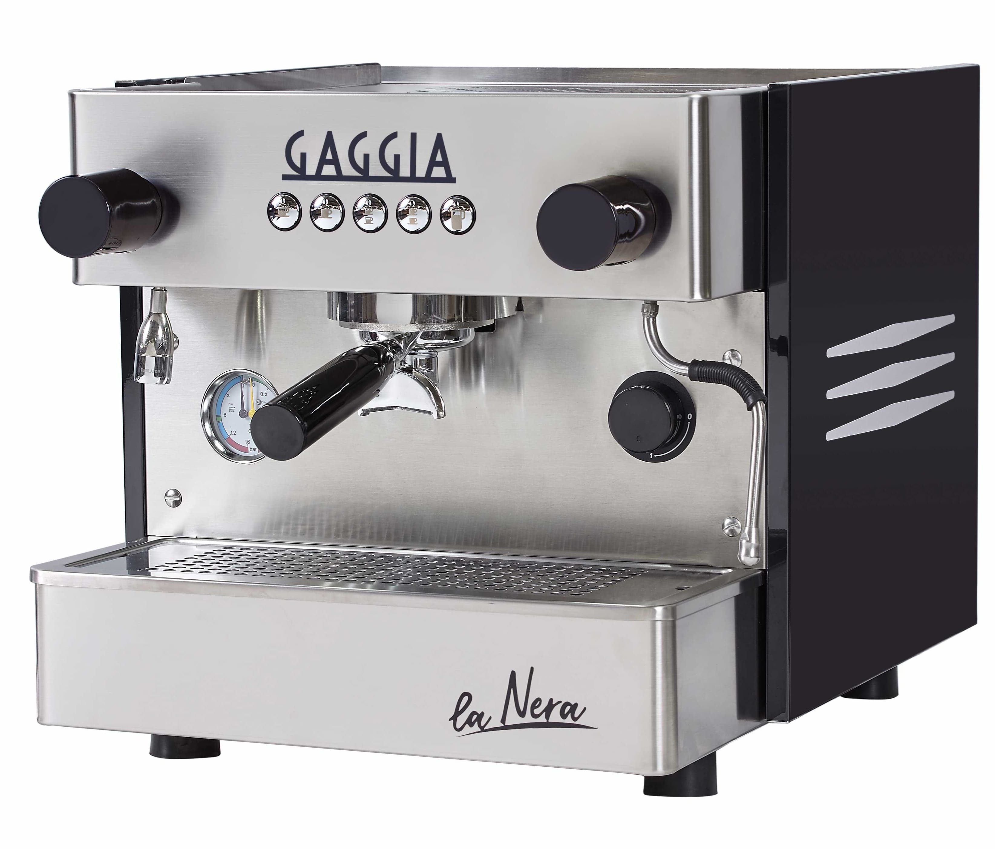 La Cafetera La Nera 1 Grupo 110 Volts es la última máquina profesional de Gaggia, diseñada para ofrecer el mejor espresso con intensidad y emoción. Con un diseño contemporáneo y tecnología avanzada, La Nera se adapta a las tendencias y necesidades modernas del mundo del café. Además, ofrece flexibilidad al barista al permitir el control remoto de sus funciones y rendimiento, así como la opción de usar kits portafiltros para cápsulas profesionales y monodosis de papel certificadas ESE.