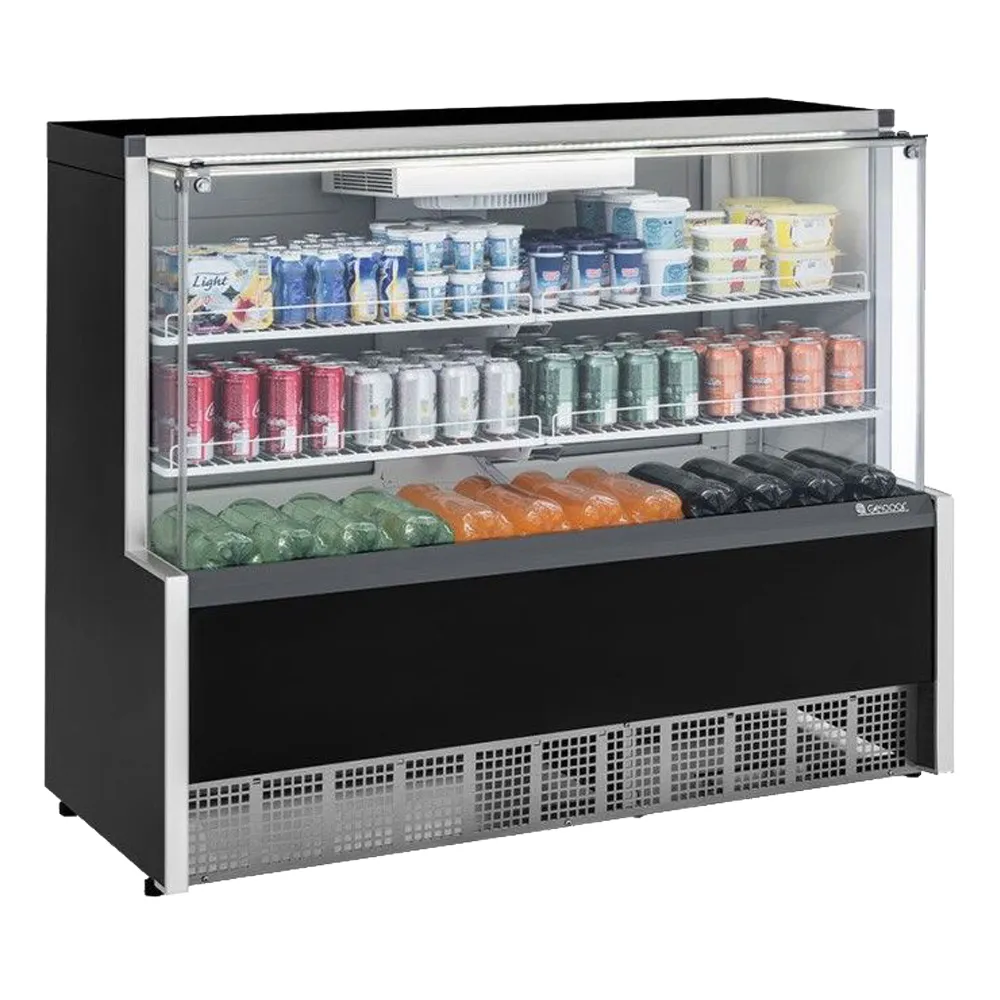 La Vitrina Refrigerada GPFA-140R-PR es un equipo ideal para la conservación y exhibición de bebidas, fiambres y productos lácteos, diseñada para negocios que requieren mayor capacidad y una presentación atractiva para el cliente.